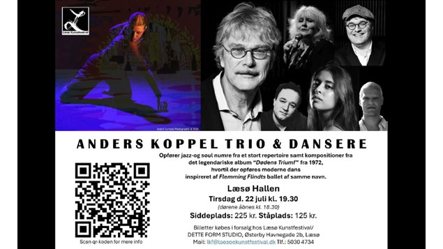 Musik og dans i perfekt harmoniAnders Koppel Trio vil fremføre en blanding af jazz- og soulnumre fra deres omfattende repertoire, samt kompositioner fra det ikoniske album "Dødens Triumf" fra 1972. Dansere vil opføre moderne dans inspireret af Flemming Flindts ballet af samme navn, hvilket skaber en uforglemmelig oplevelse af musik og bevægelse i perfekt harmoni.