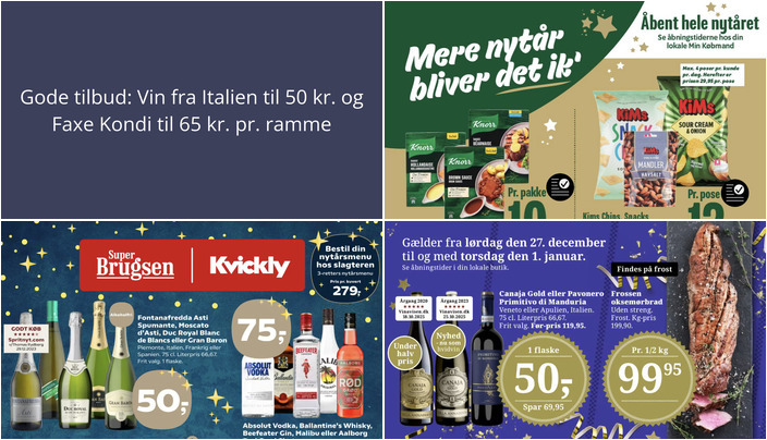 SuperBrugsen har et godt tilbud på Fontanafredda Asti Spumante, Moscato d'Asti, Duc Royal Blanc de Blancs eller Gran Baron til kun 50 kr. pr. flaske. Tilbuddet gælder fra lørdag den 27. december til onsdag den 31. december.