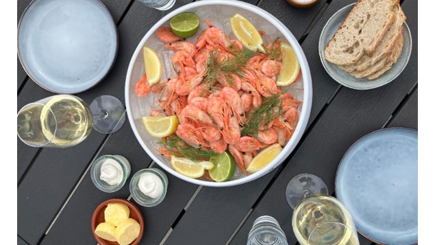Riesling og rejer under åben himmel